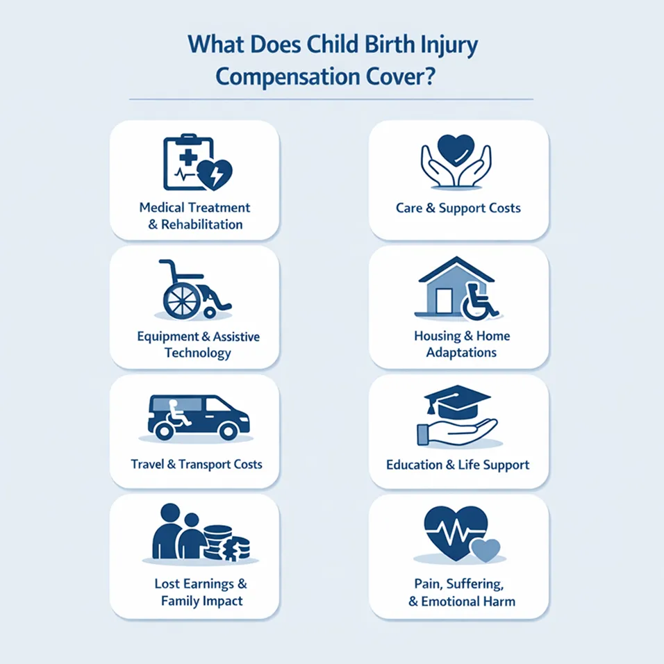 A birth injury can change the lives of everyone in the family. A strong birth injury compensation claim clearly sets out the affected person’s current needs and their future care requirements. The goal of birth injury compensation is to help people in a practical way. That could involve therapy, care, equipment, and a safer house.